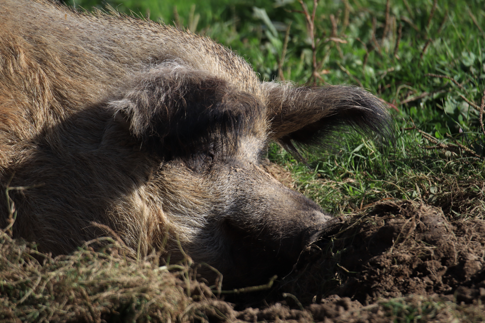 Abseits des Trubels saß ich auf Bänken in der Sonne, schaute durch die langsam gelb werdenden Eichenblätter in den blauen Himmel. Ließ mich wärmen und beobachtete Leute. Und jetzt weiß ich, warum ich diese Tierparks nicht mag. Die Menschen sind laut und ungestüm. Sie pfeifen, sie mache dumme Witze. Sie bewerfen die Schweine mit Eicheln. Sie erwarten etwas von den Tieren. Reaktionen. Stunts. Was auch immer. Die Tiere hingegen kennen das wahrscheinlich schon. Werden jeden Tag vollgestopft mit Tierfutter. Von morgens bis abends. Vielleicht sind sie auch so froh wie ich, wenn der Abend anbricht und es ruhiger wird.