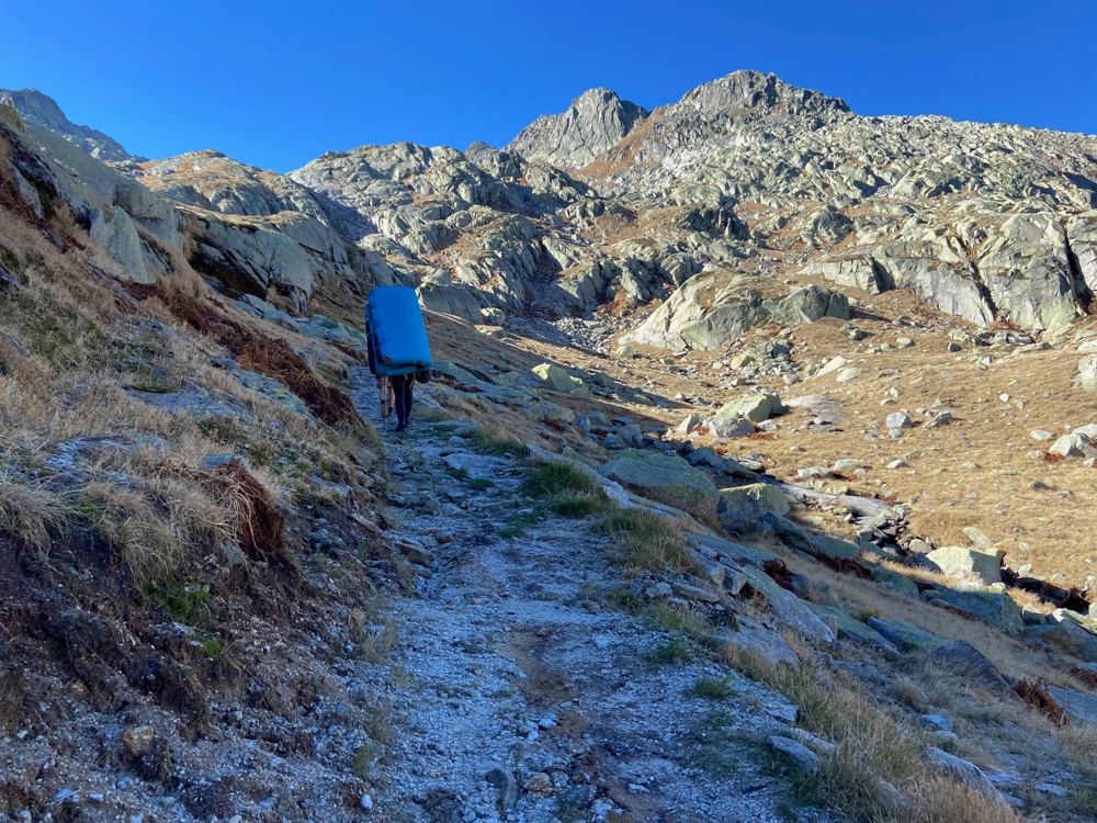 Sonntag ist Ruhetag für M und mich. Während Ro und Re noch den Grat hinauf kraxeln, liegen wir gemütlich in der Sonne und lesen. Machen einen Spaziergang, verbrennen uns die Gesichter auf 2100 Metern nach 2,5 Tagen. Reden, lernen uns kennen und die Sonne küsst mich da, wo ich lächle. Die Lippen mittlerweile trocken und rau, verbrannt und vom Wind zerlegt. Auch die Hände sind kaputt und die Haut an ihnen dünn. Mein Körper erschöpft vom vielen draußen sein, vom Bouldern, von der Höhe, von der Sonne und dem Wind. Das ist die Erschöpfung, die ich liebe.