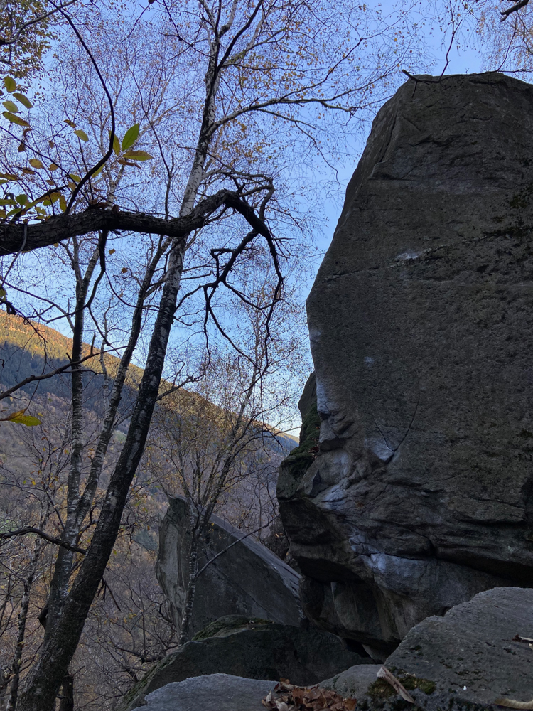 Der Nebelsuppe der letzten Wochen wieder einmal entkommen. Letztes Wochenende auf dem Gotthard hat das gut funktioniert, also versuchen wir das einfach nochmal. Dieses Mal sogar mit einem Urlaubstag am Montag. Am Freitagnachmittag fahre ich auf den Hof und werde beim Aussteigen von den Eseln begrüßt. Lange am Kachelofen kann ich nicht verweilen, es geht noch ein bisschen in den Wald und dann in die Halle – Dinge abgeben, Dinge holen, kurz mit Y. quatschen und dann warten. In mir kribbelt es, denn ich freu mich auf die kommenden Tage. Wir sammeln Ma. ein, drei Stunden ab ins Tessin juckeln, Ro. begrüßen, der schon von den ganzen Boulder*innen zugeparkt wurde und dann schnell ins Bett.