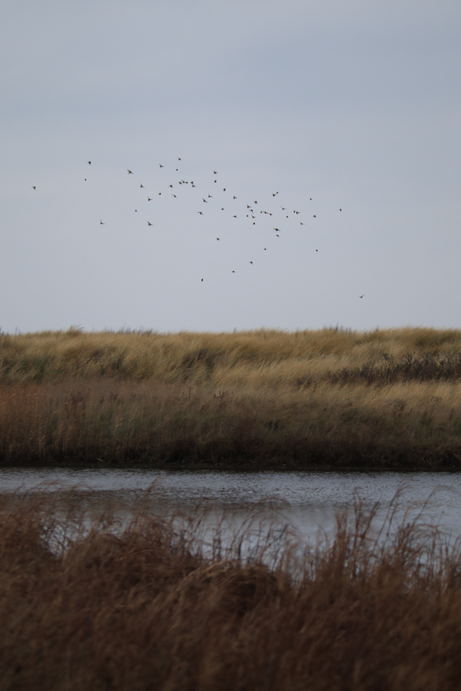 Wind hat nachgelassen an diesem Silvestermittag. Stapfen durch den Sand. Hund fetzt an der langen Leine. Spürt die Freiheit in kleinen Stücken. Spüre sie auch. Gänsegeschnatter von den Wiesen. Entenquaken vom kleinen See aus. Zwischengelagert hinter den Dünen. Entspannungszone für die Vögel. Entspannungszone für mich. Eiderente in den Wellen. Dünengras stark gebeugt. Menschen am Strand, auf dem Deich, draußen. Wir sind es auch. Meeresluft, salzig und herb. Wellen brechen am Ufer. Kapuzen tief gezogen, darunter noch die Wollmütze und ein freier Kopf. Kleine Vögel piepsen am Himmel ein Lied. In mir drin auch ein kleiner Song. Soundtrack des Lebens.