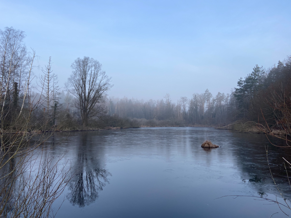 Schwanzmeisen, Buchfink, Sumpf- und Tannenmeisen. Alle hüpfen sie in den Bäumen umher. Mistel-, Sing- und Wacholderdrossel trällern ihre Melodien in den Morgen. Am Weiher stehend hören wir dann auch noch die Graugänse. Sie sind wach. Sie schnattern und sie sind im Landeanflug. Graugansgeräusche klingen für mich immer nach Heimat. Im Winter sind sie zu unzähligen am See im Norden und es gibt immer ein riesiges Spektakel.