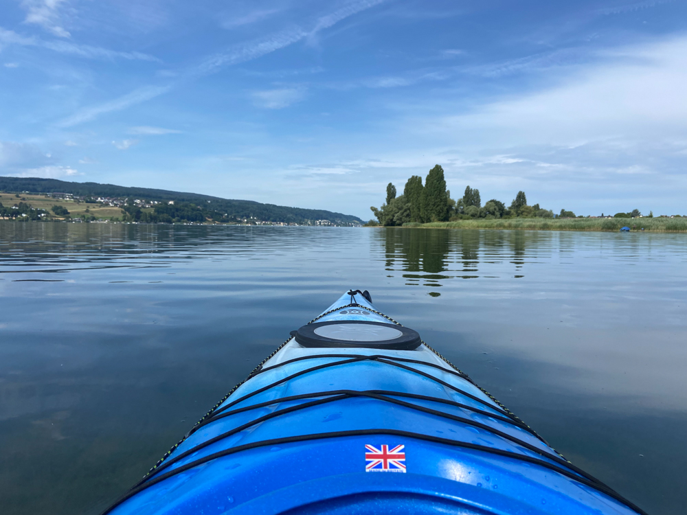 Dann ist Sonntagmorgen und ich versuche mich aus dem Bett zu hieven. Merke die Kilometer von der Feierabendrunde gestern Abend in den Beinen. Aber ich muss das jetzt tun, ich kann das nicht schon wieder aufschieben. Das ganze Jahr schiebe ich es schon vor mir her. 2025 saß ich bisher noch nicht ein einziges Mal im Kajak. Ich wuchte es aus dem Winterschlaf, bocke es auf und ziehe es zum Wasser hinunter. Eigentlich würd ich fast erst mal lieber eine Runde schwimmen gehen, aber dafür ist später auch noch Zeit.