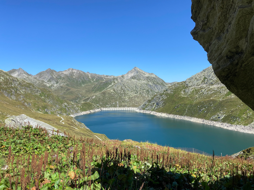 Um 15:30 Uhr hat mich Y soweit, dass ich mich mit zur Wanderung auf mache. Die 5-Seen-Wanderung ist mir bereits bekannt. Ich weiß also, was auf mich zu kommt. Hätte mich nicht überreden lassen sollen, denn beim Anstieg oberhalb des Stausees muss ich auf halber Höhe umdrehen. Meine Lunge macht wegen der Erkältung noch nicht wieder mit. Y muss alleine weiterziehen. Ich genieße zumindest noch kurz den Blick auf die Gipfel und den Lago und mache mich dann wieder zurück auf den Weg zu K und Mä.