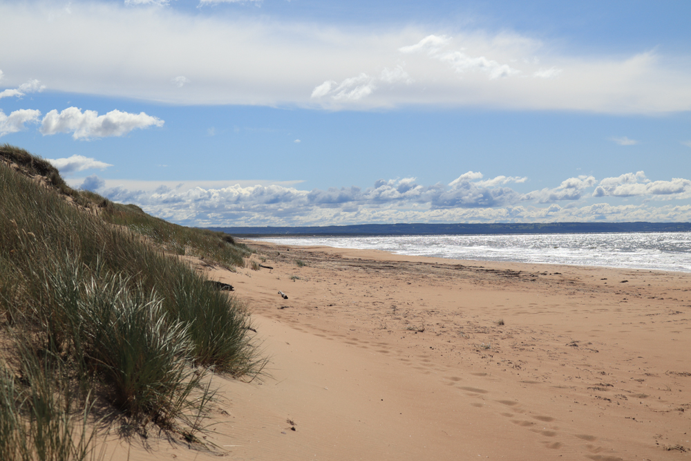 Zum Mittagessen ging es an die Küste auf einen kleinen Parkplatz. Alles reinspachteln und dann ans Meer. Ein bisschen durch die Dünen laufen, auf die Wellen schauen, ein paar Meter durch den Sand watscheln und ab zurück zum Auto. Unser Ziel für heute war noch der Nationalpark an der Grenze zu Norwegen. Lange Fahrt, langer Tag, aber viel erlebt.