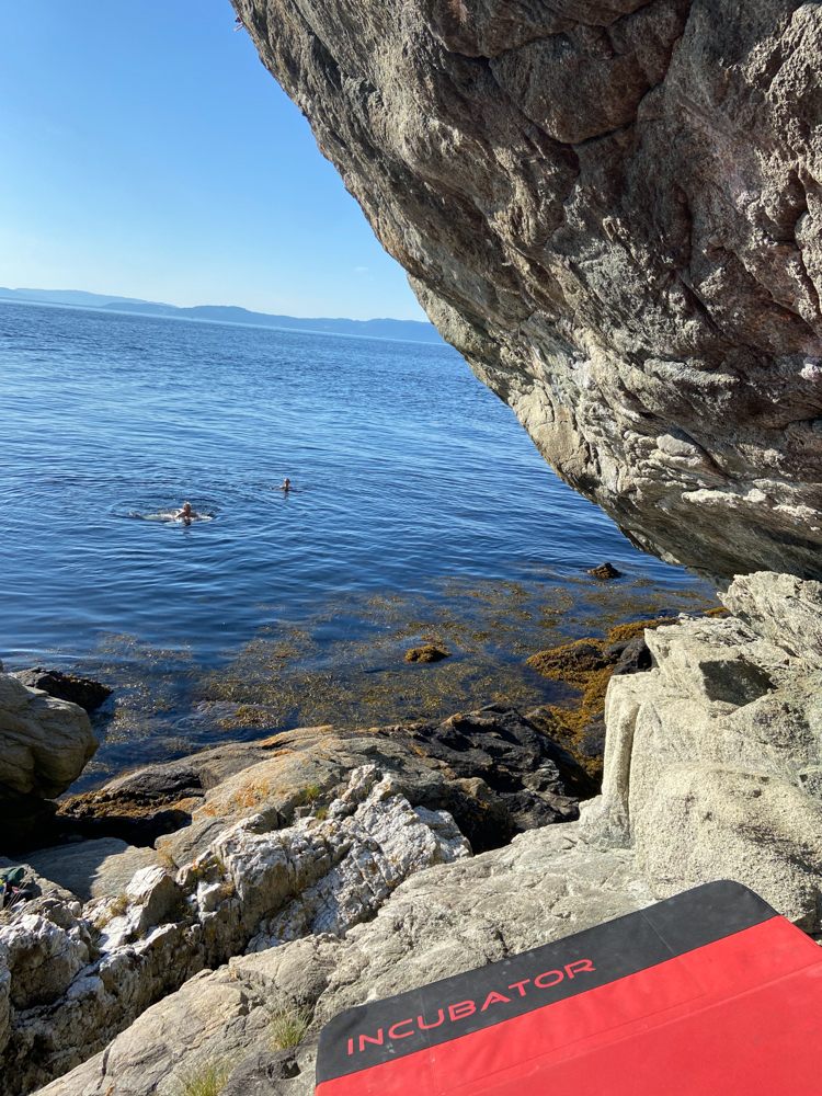 Also hüpften wir über Steine, wateten durch’s Wasser, kraxelten an den Felsen entlang und fanden ziemlich lange nichts. Bis wir dann doch einen Block fanden. Weil wir aber nur das eine Crash Pad dabei hatten, war das Landing etwas gefährlich und wir entschieden uns unseren eigenen Boulder zu basteln. Fühlte sich auf jeden Fall ganz gut an, mal wieder an Fels an den Fingern zu spüren.