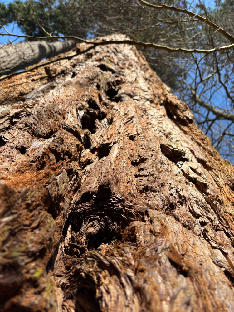 Ich beobachtete Ameisen, die auf ihren Haufen umherwuselten. Es war ein gutes Gefühl da zu stehen und ihnen beim Arbeiten zuzuschauen, während ich nichts zu arbeiten hatte. Mein Mammutbaum holte ich dann doch noch kurz die Handykamera hervor. Streichelte einmal über die weiche Rinde, ließ ihm ein Lächeln da.