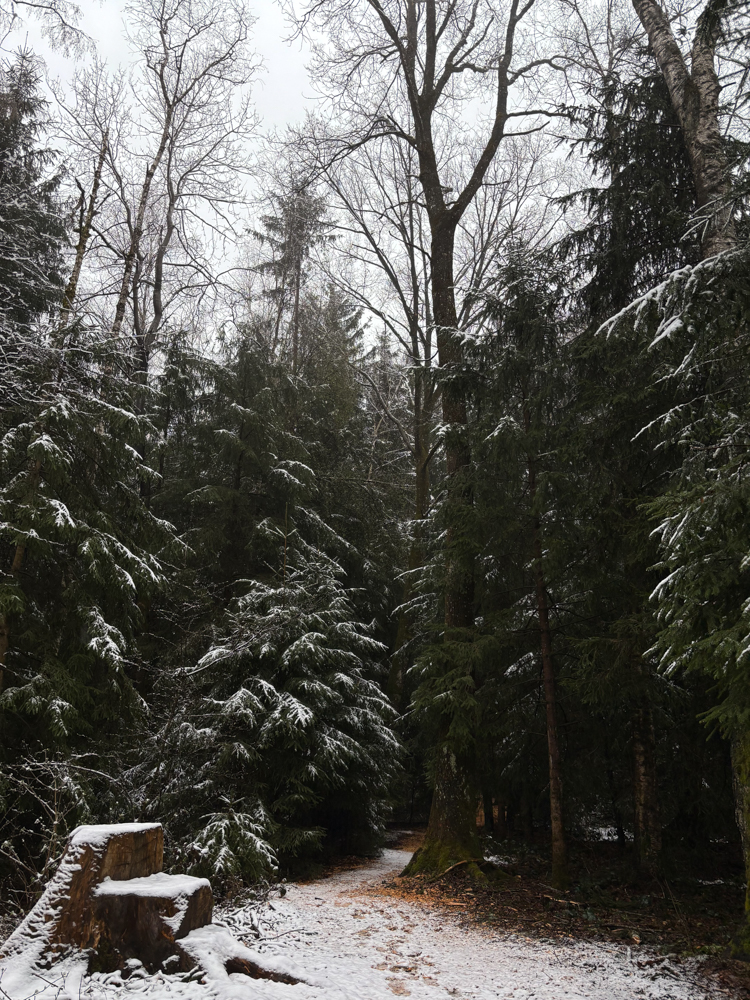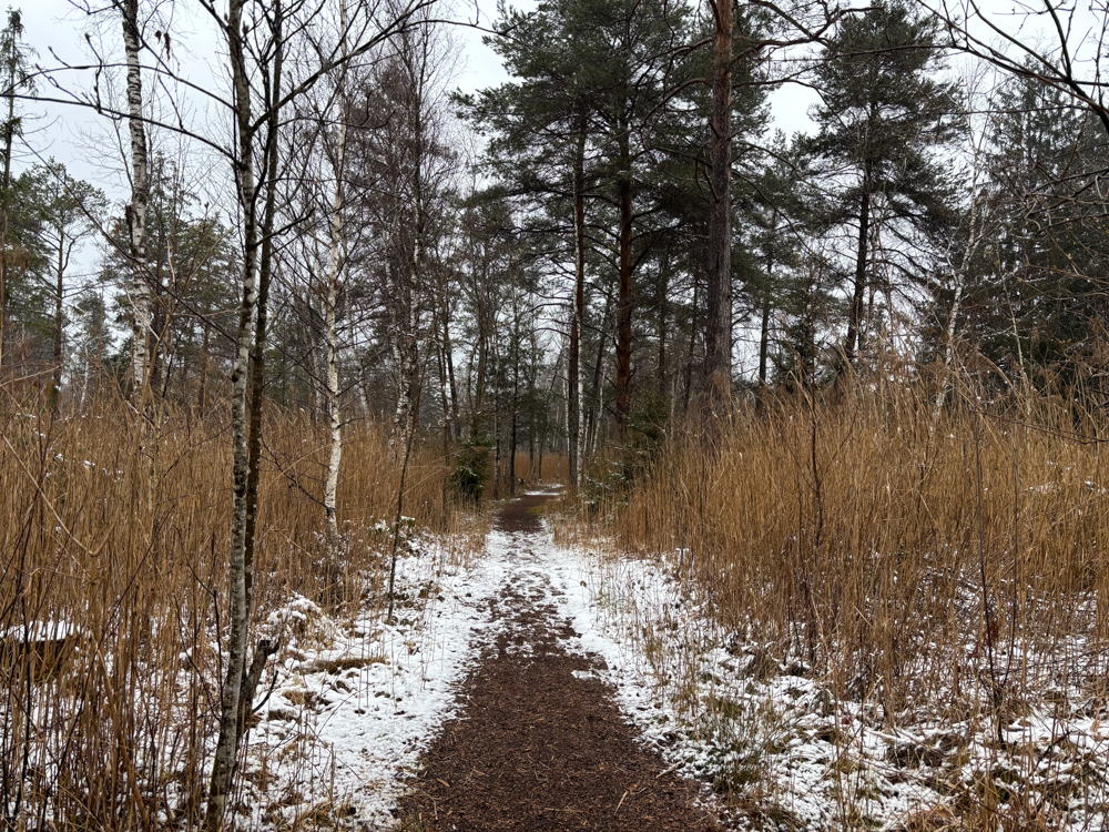 Dann kam die große Überraschung. Es lag Schnee. Und es regnete. Zum Glück nur die ersten 10 Minuten, aber ich war am Parkplatz schon kurz versucht einfach wieder einzusteigen (oder gar nicht erst auszusteigen) und wieder nach Hause zu fahren. Aber ich bin so froh, dass ich ausgestiegen und losgelaufen bin. Angeblich gibt es hier den kleinen Waldkauz, aber klar, dass ich ihn an dem Tag nicht zu Gesicht bekommen hatte. Generell sah das Hudelmoos nach einem ziemlichen Paradies für Vögel, Insekten und Libellen aus. Nur das Wetter passte nicht dazu.