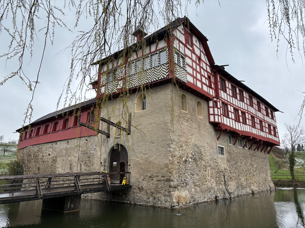 Aus dem Hudelmoos raus, ging es dann nach Hugwil rein. Und hier war das Highlight das Wasserschloss. Sah urig aus und kam irgendwie ganz unerwartet. Ich umrundete es einmal, begrüßte die schlafenden Erpel auf der Wiese und machte mich weiter im Bogen wieder zurück zum Naturschutzgebiet.