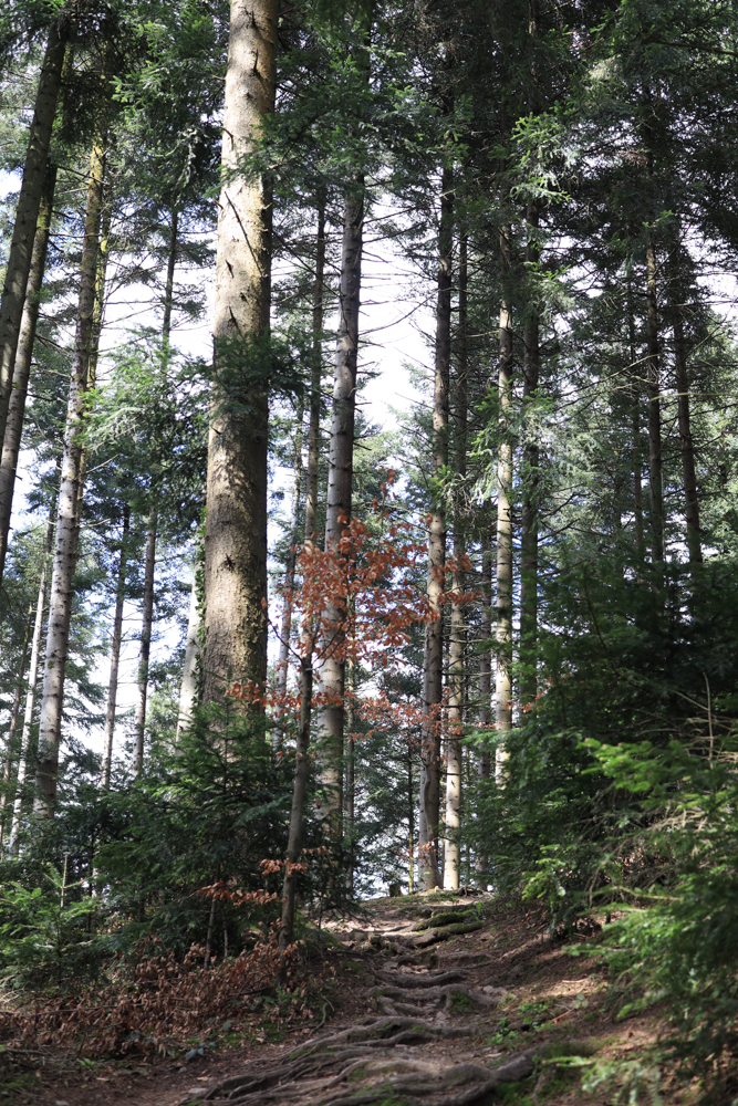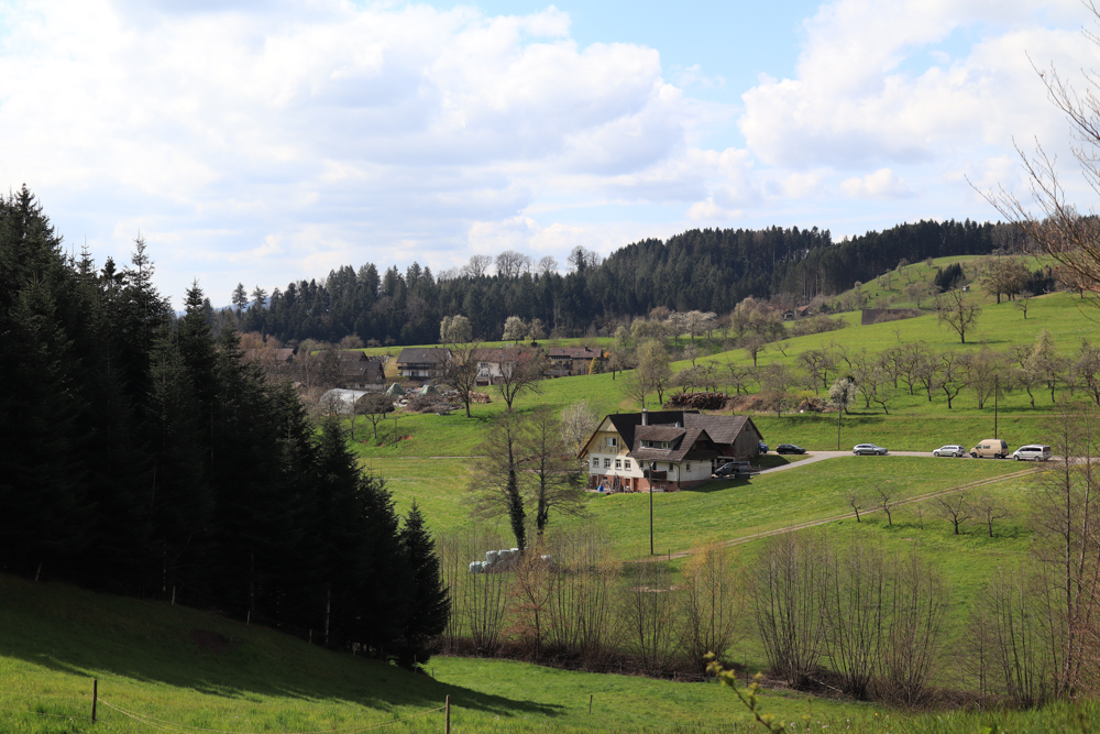 Allen hatte sich am Morgen auf den Weg nach Frankreich gemacht. Kurzerhand fragte ich ihn, ob er durch den Schwarzwald fahren würde. Also suchte ich einen Wanderparkplatz in einem kleinen Ort raus, fuhr zwei Stunden dorthin und startete zunächst auf eine Wanderung. Hier begann die Hühnerrunde. Es war magisch schönes Wetter. Der Parkplatz gerammelt voll. Viele Menschen traf ich trotzdem nicht.