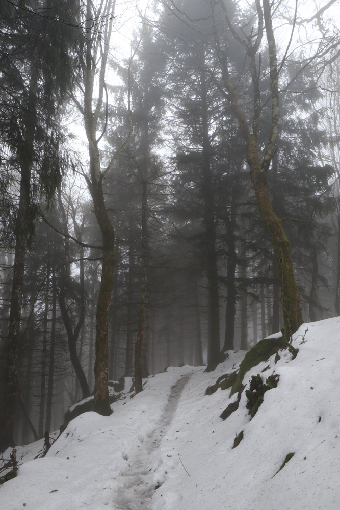 Alleine durch den Schwarzwald. Hinein in den Wald. Durch den Nebel laufend. Trotzdem überall die Schönheit spürend. Die Magie, die dieser Ort bereit hält. Schnee unter den Sohlen. Hoch ist er. Versinke drin. Rutsche aus auf ihm. Stolpere, fange mich auf. Weiter durch den Schwarzwald. Alleine.